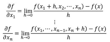 n개의 variable에 대한 Partial Derivative는 다음과 같이 정의한다.