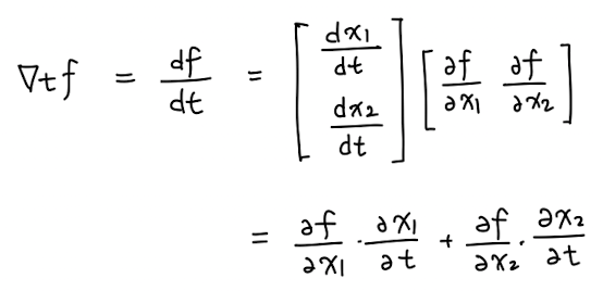 - 변수가 x1, x2로 두개일 때, t에 대한 gradient를 구하는 일반식은 다음과 같다.