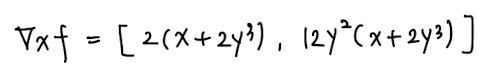 이 결괏값을 gradient vector로 표기하면 다음과 같다.