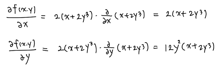 Example) 아래의 식을 각각 x와 y에 대해 편미분하라.