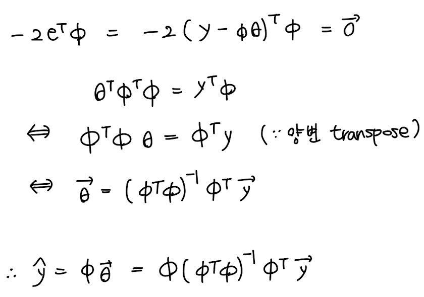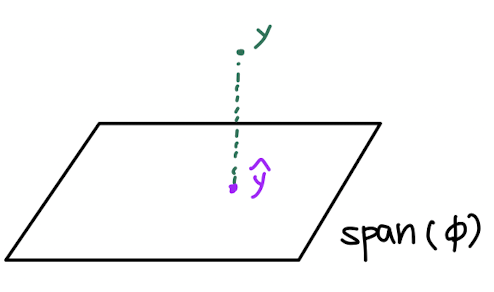이때, 구한 ŷ의 형태가 익숙하다. 이는 orthogonal projection(직교사영) 공식과 동일한 것을 알 수 있다.