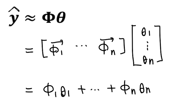 위에서 언급한 주어진 Linear model을 적용하면 다음과 같은 ŷ 값이 도출된다.