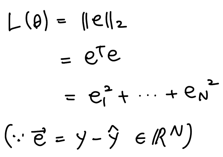 우리는 이 Loss function을 최소화하는 지점(θ)을 찾기 위해 L(θ)의 partial derivative를 구하여, 0이 되는 지점을 찾았다.