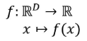 여기서 R^D를 f의 domain(정의역)이라 하고, f(x)를 f의 image(상/치역) 혹은 codomain(공역)이라 한다.