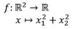 2) vector x의 연산은 x1^2 + x2^2을 수행한다.